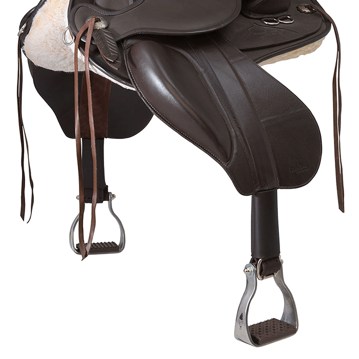Les fenders SUPPORT en cuir avec des taquets intégrés offrent un meilleur maintien des genoux du cavalier et augmentent plus de sécurité en randonnée ou au travail en carrière. Le cavalier est assis plus confortablement.