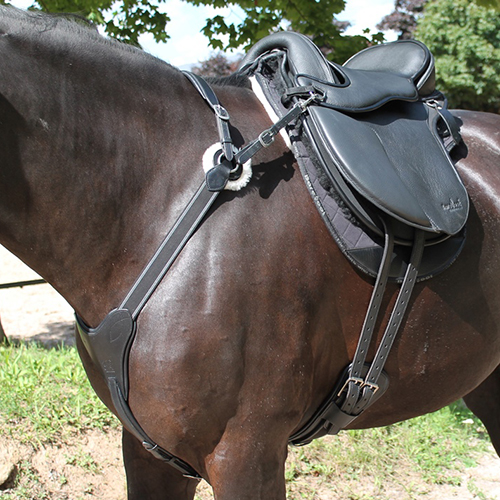Porte-étrivières amovibles fixé par velcro et recouvert de cuir. Particulièrement...